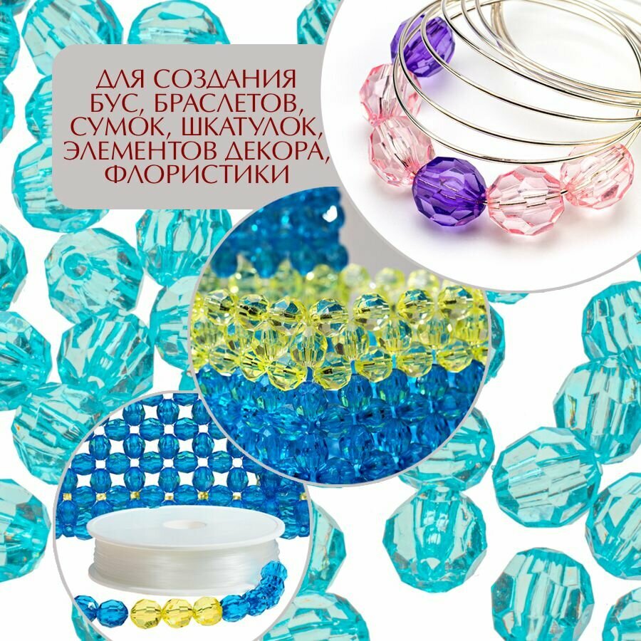Отзывы на Бусины прозрачные граненые "Шар" 10 мм, светло-бирюзовые AD 12, 40гр./80 шт.