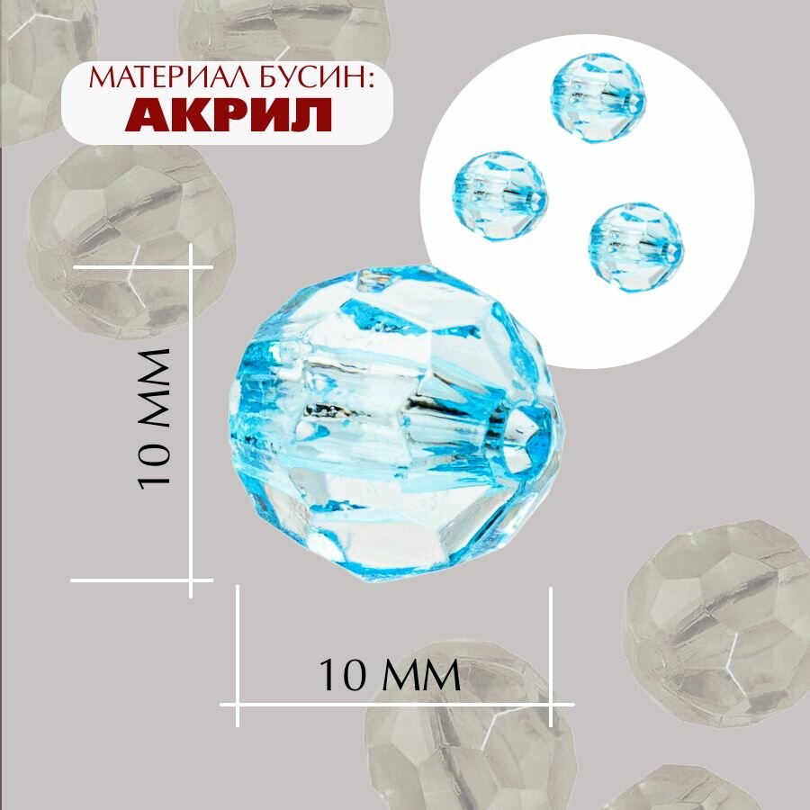 Бусины прозрачные граненые "Шар" 10 мм, голубые AD 13, 40гр./80 шт. 348 ₽
