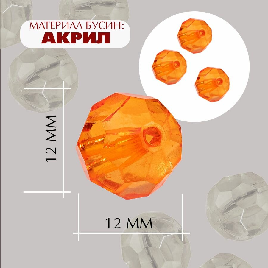 Отзывы на Бусины прозрачные граненые "Шар" 12 мм, оранжевый AD 22, 40гр./80 шт.