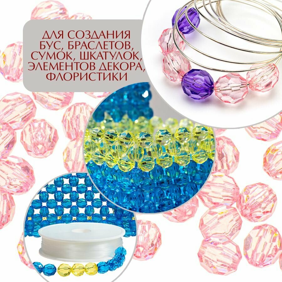 Отзывы на Бусины прозрачные граненые "Шар" 12 мм, розовый AD 42, 40гр./50 шт.