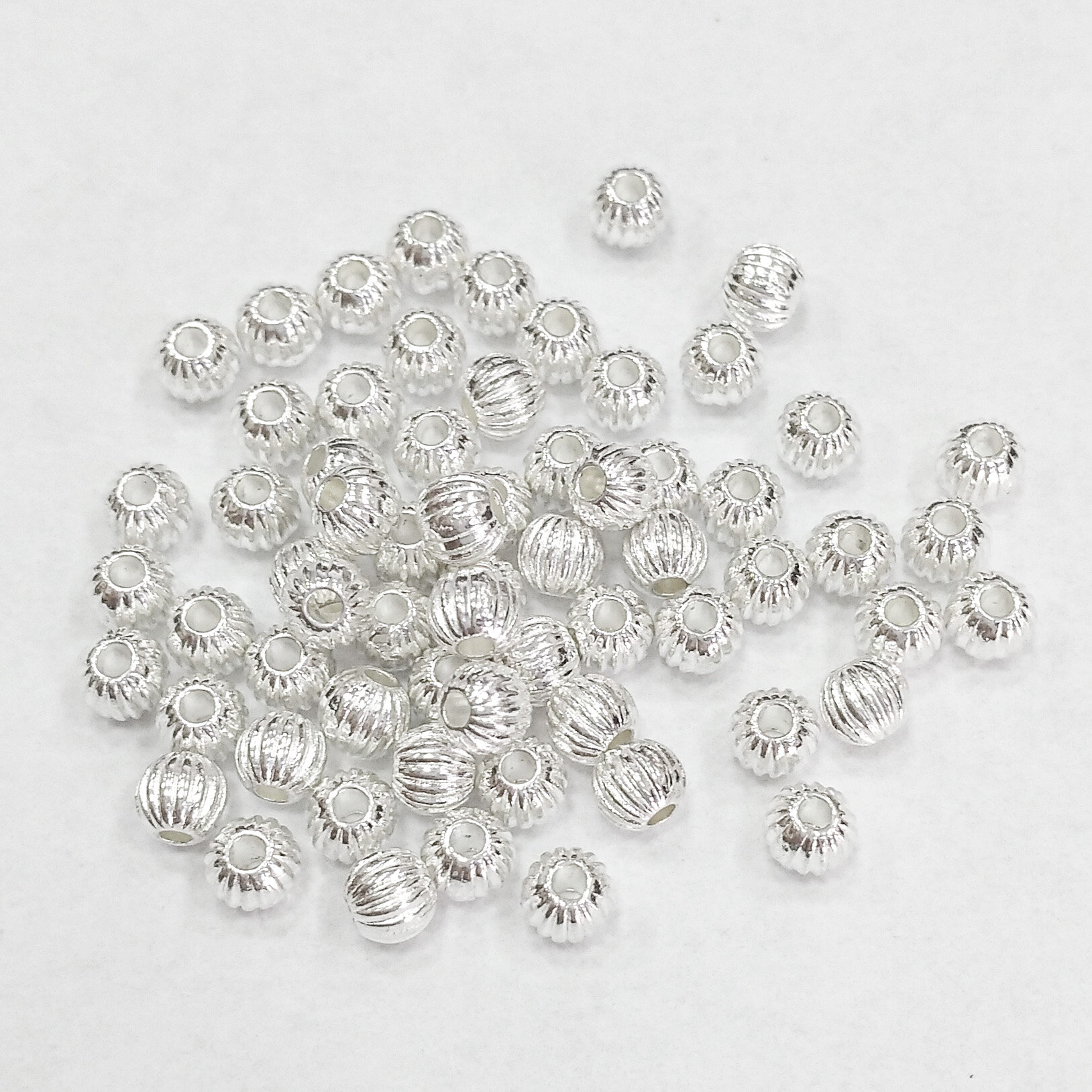 10 цен на Бусина металлическая, 4мм, с бороздками, базовый материал - цинковый сплав, серебристого цвета, 10 грамм