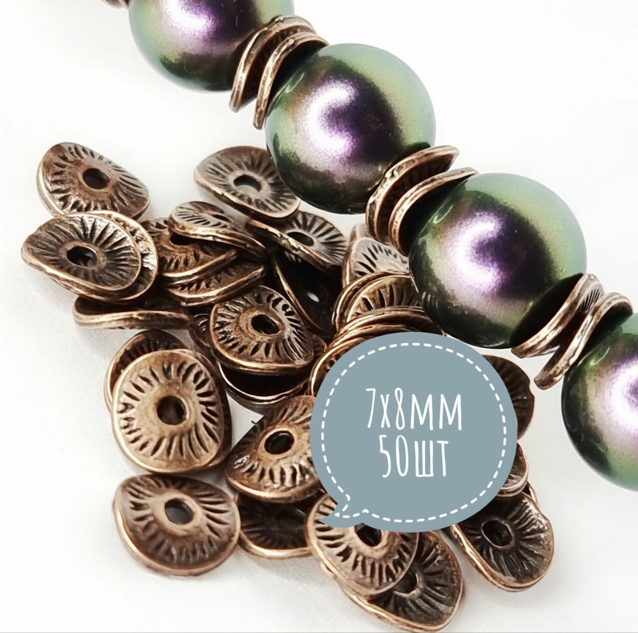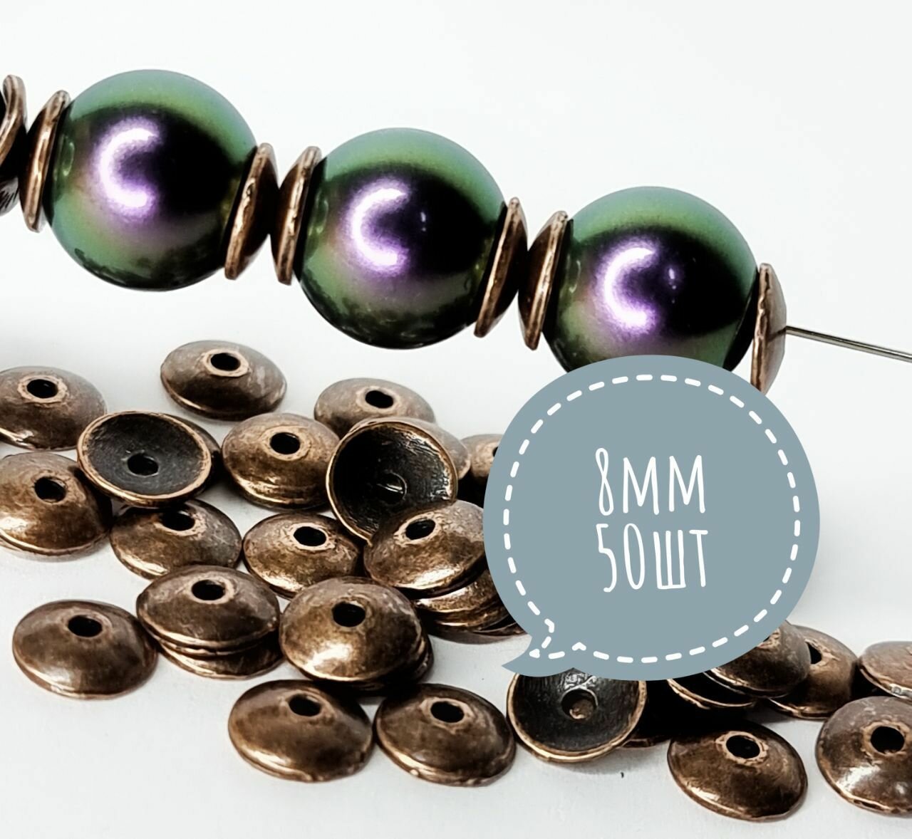 10 цен на Шапочки для бусин 8мм. 100шт. Цвет Медь.