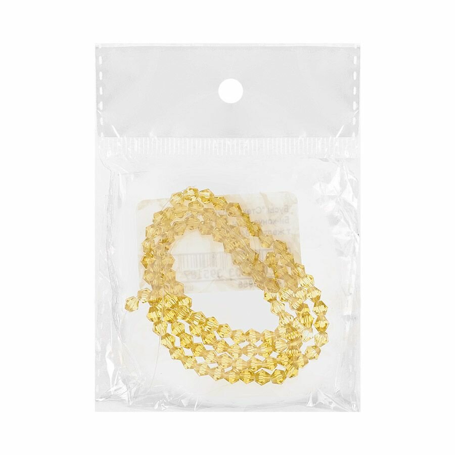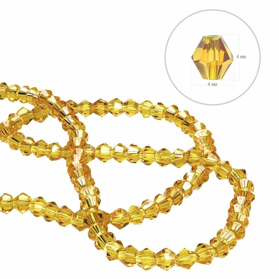 Бусы стеклянные граненые на нитях "Би-конус" 4мм. (т. желтый 8434) / Бусины стекло граненные 1 нить (100 бусин) информация: