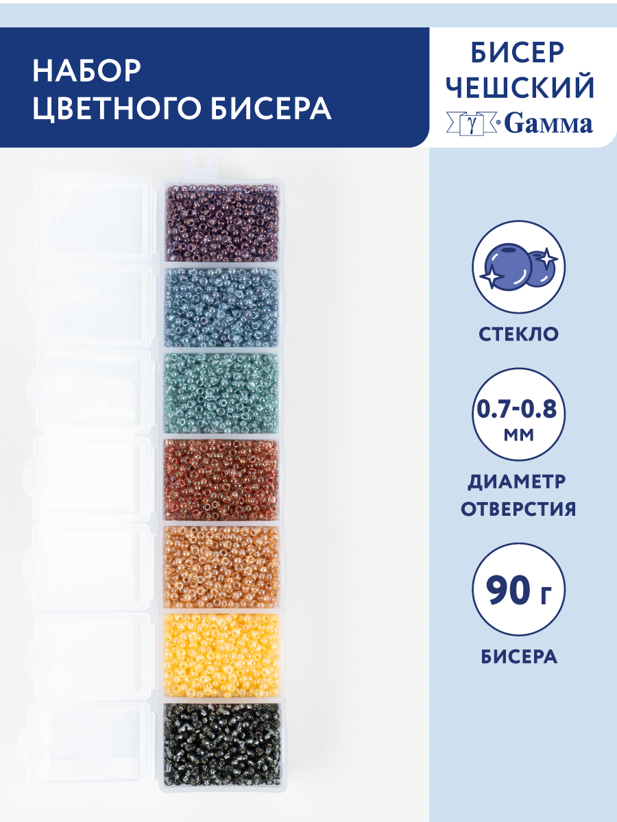 Набор бисера "Gamma" GNB 10/0 2.3 мм 90 г 7 цветов 1-й сорт №05 1 155 ₽
