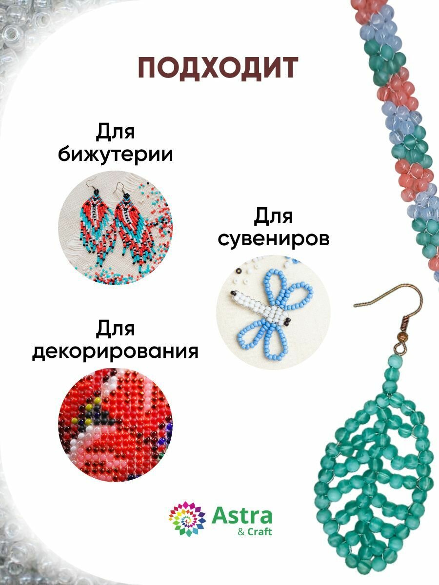 Бисер для плетения 11/0, 20г*10 упак, стекло, Astra&Craft (101 белый, прозрачный глянцевый) информация: