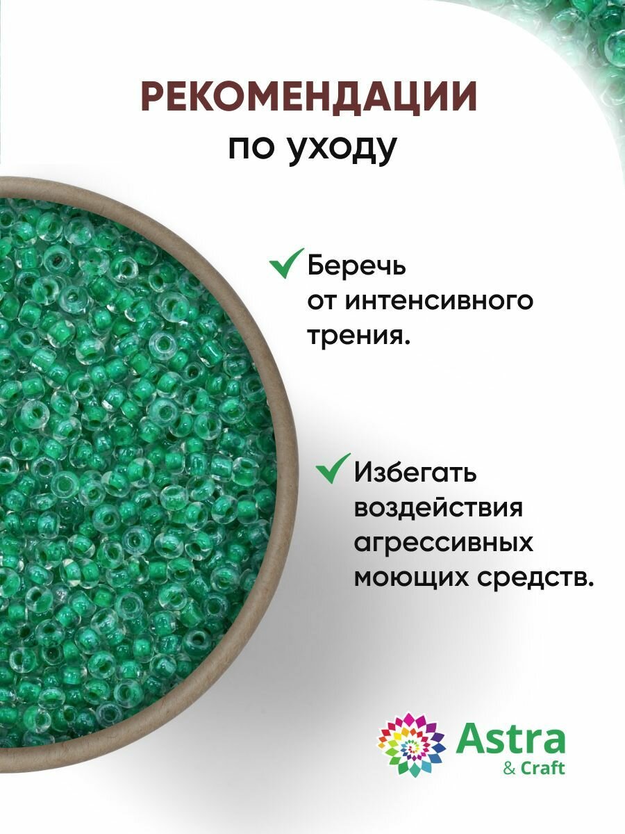Бисер для плетения 11/0, 20г*10 упак, стекло, Astra&Craft (2207 зеленый, прозрачный глянцевый с цветным центром) информация: