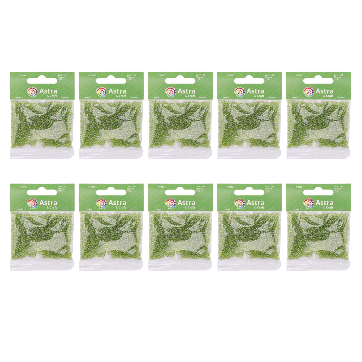 Бисер для плетения 11/0, 20г*10 упак, стекло, Astra&Craft (104 салат, прозрачный, глянцевый) информация: