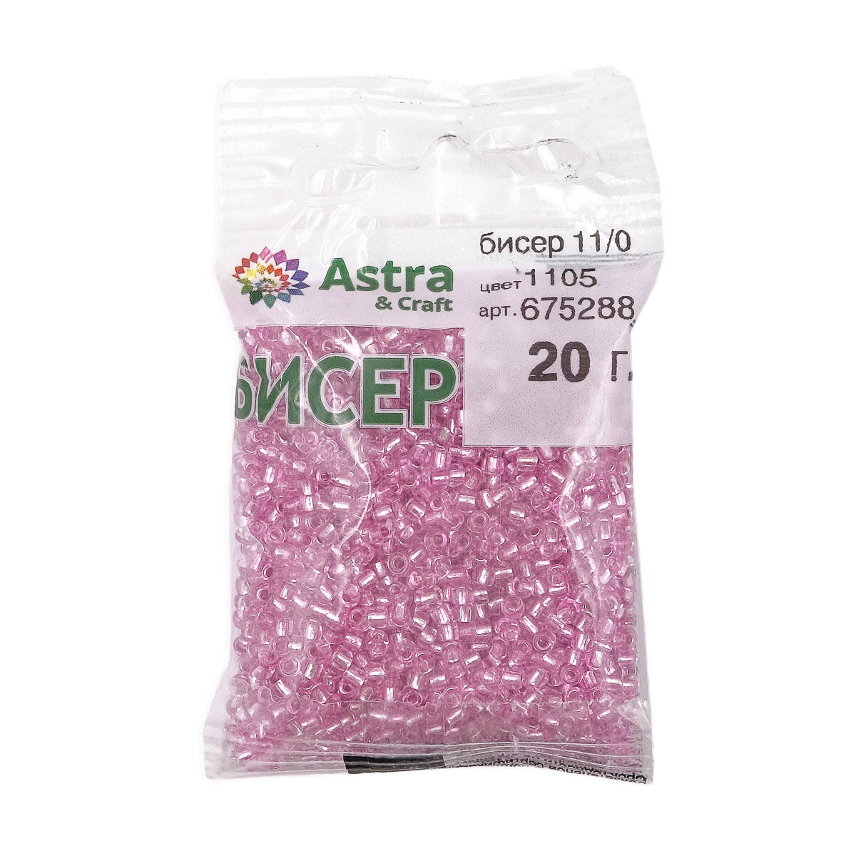 Бисер для плетения 11/0, 20г*10 упак, стекло, Astra&Craft (1104 розовый, прозрачный с серебристым центром) 477 ₽