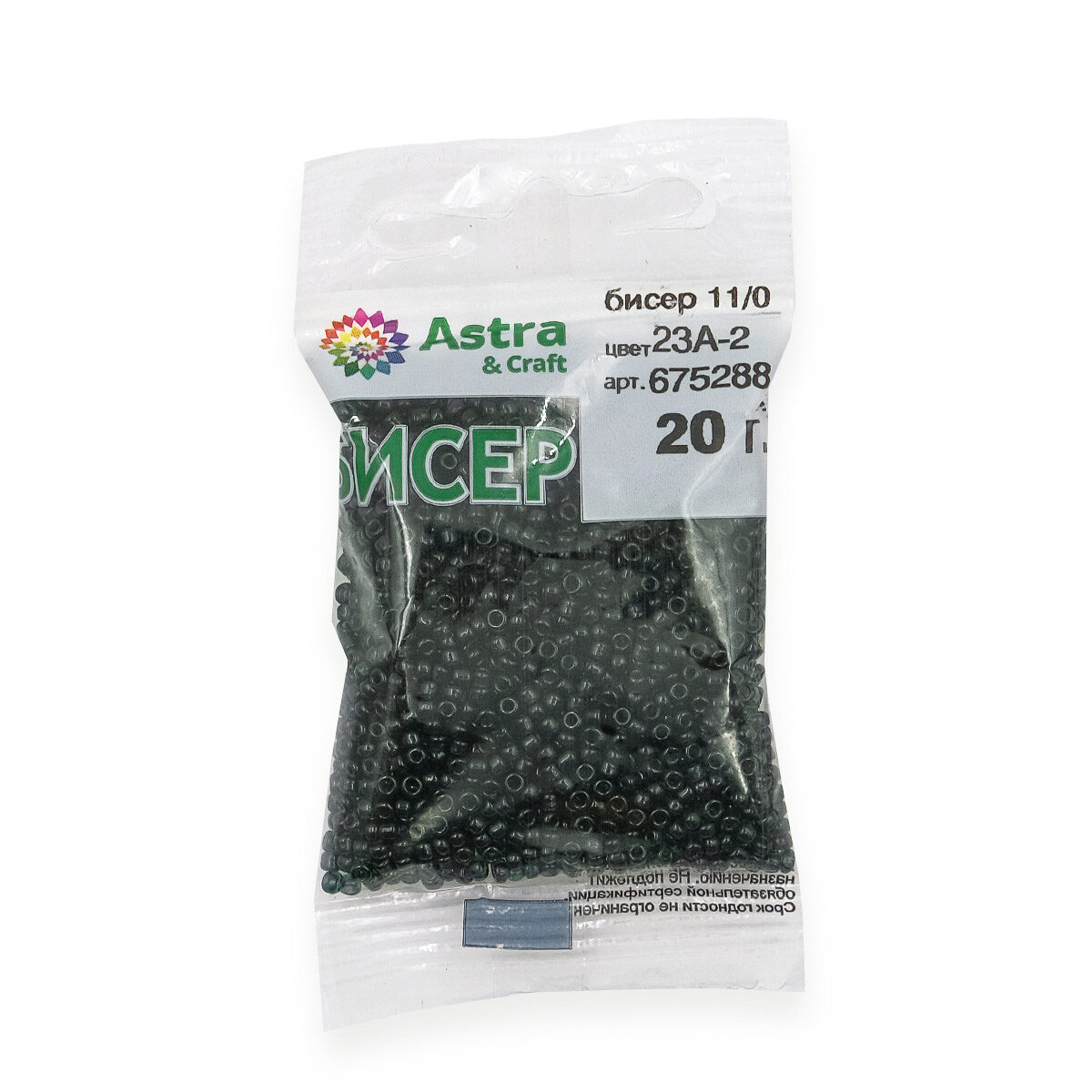 Бисер для плетения 11/0, 20г*10 упак, стекло, Astra&Craft (23А-2 тёмный изумруд, прозрачный с цветным центром) информация:
