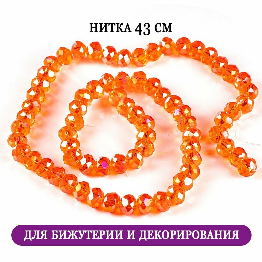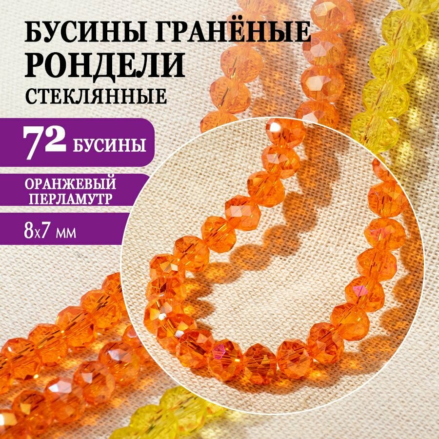 10 цен на Бусы стеклянные граненые на нитях Рондели 8х7мм (оранжевый перламутр 8418/1) / Бусины стекло граненные 1 нить (72 бусины)
