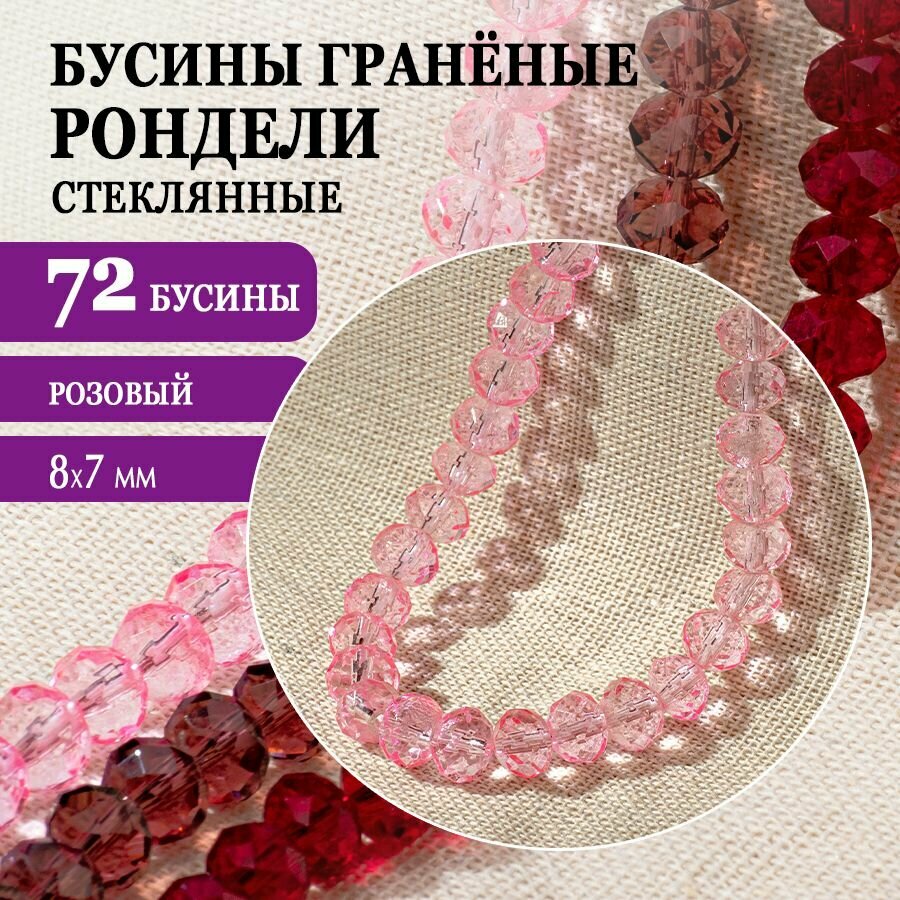 10 цен на Бусы стеклянные граненые на нитях Рондели 8х7мм (розовый 8422), 1 нить (72 бусины)