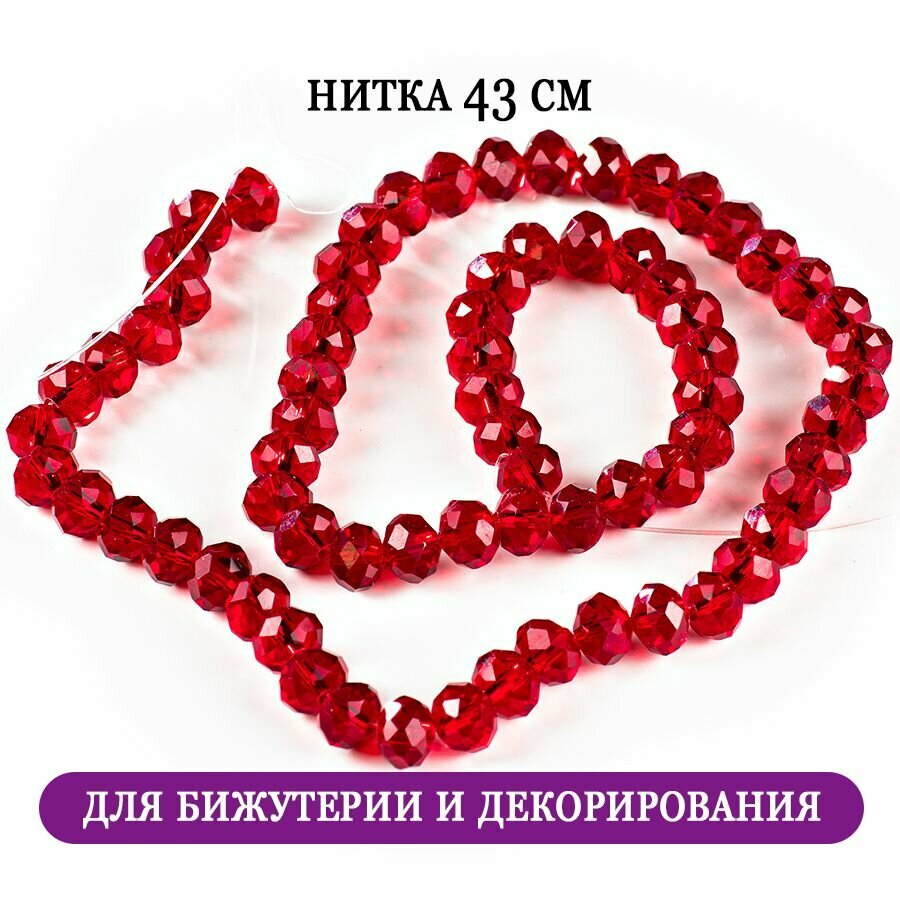 Бусы стеклянные граненые на нитях Рондели 8х7мм (красный 8414), 1 нить (72 бусины) 358 ₽
