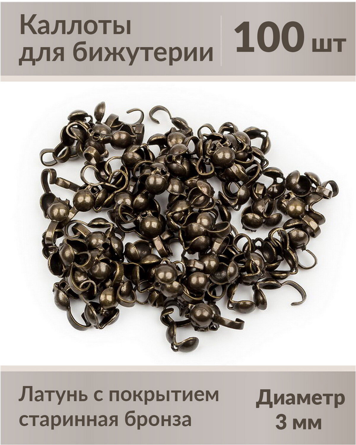 Каллоты (концевики) для нити, лески, диаметр 3 мм, латунь с покрытием "старинная бронза", 100 шт. информация: