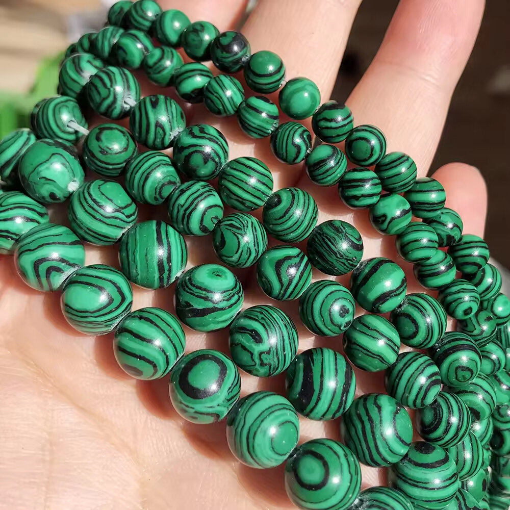 10 цен на KamenOpt / Малахит искусственный бусины 12 мм, на нитке 38 см