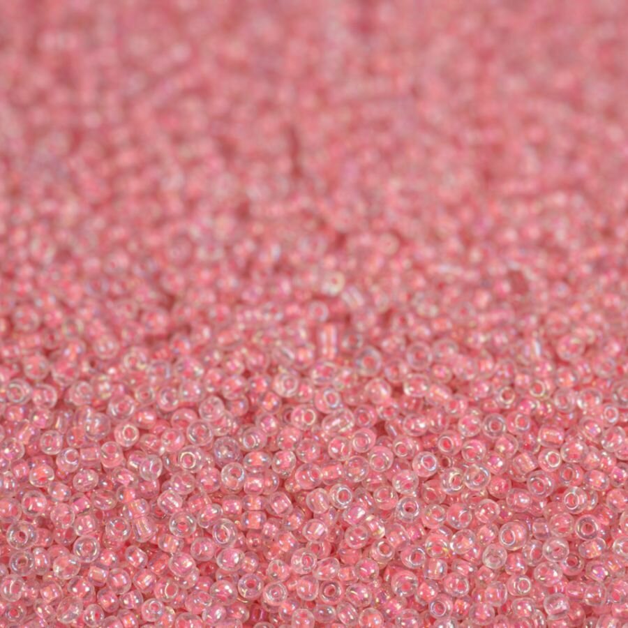 10 цен на Бисер 12/0 прозрачный радужный с розовым стержнем №210, 450 гр, некалиброванный