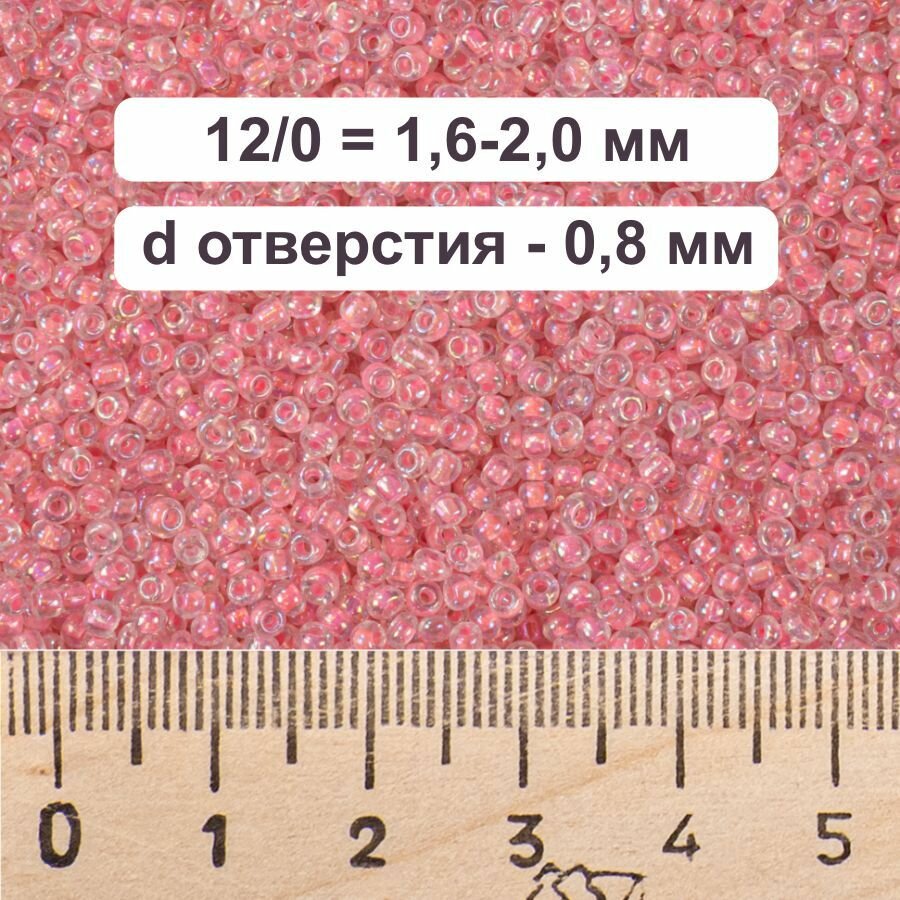 Бисер 12/0 прозрачный радужный с розовым стержнем №210, 450 гр, некалиброванный информация: