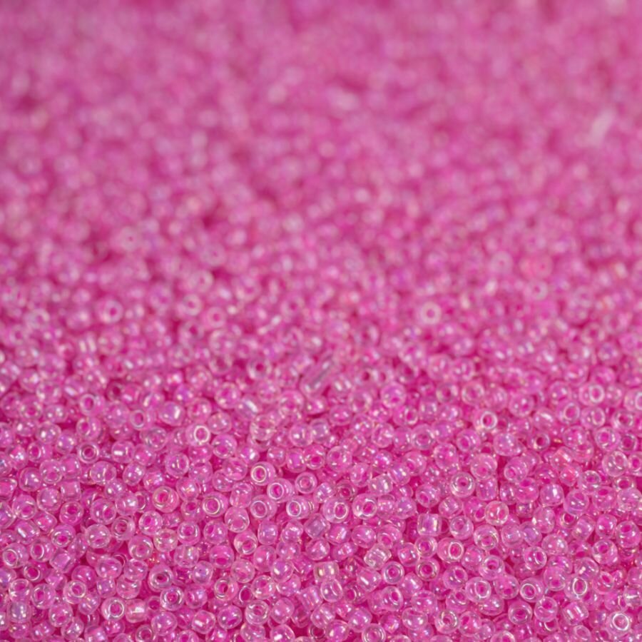10 цен на Бисер 12/0 прозрачный радужный с розовым стержнем №204, 450 гр, некалиброванный