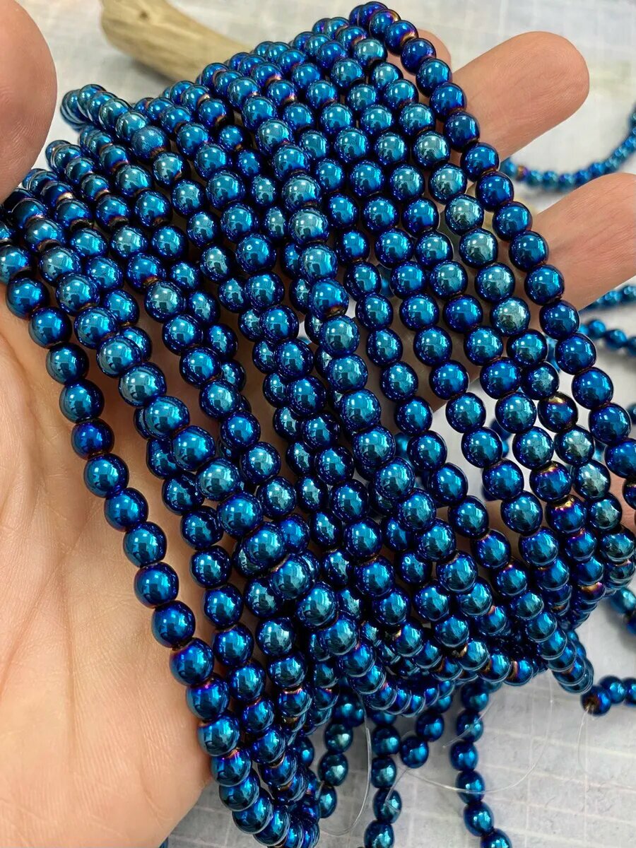 Гематит круглые бусины 6 мм, синий информация: