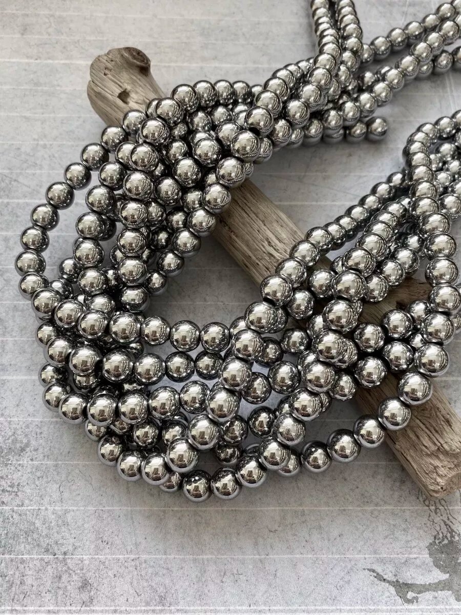 10 цен на Гематит бусины 8 мм круглые шарики серебристые