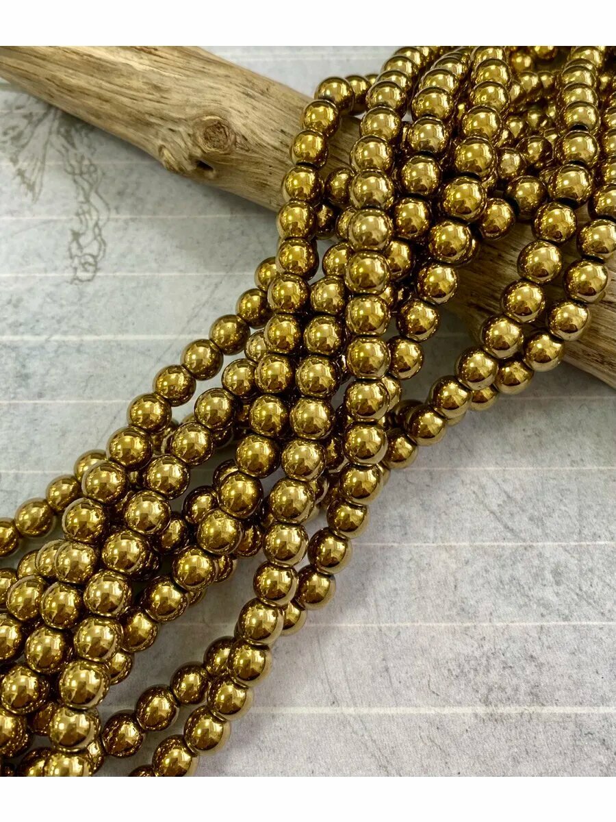 10 цен на Гематит круглые бусины 6 мм, античное золото