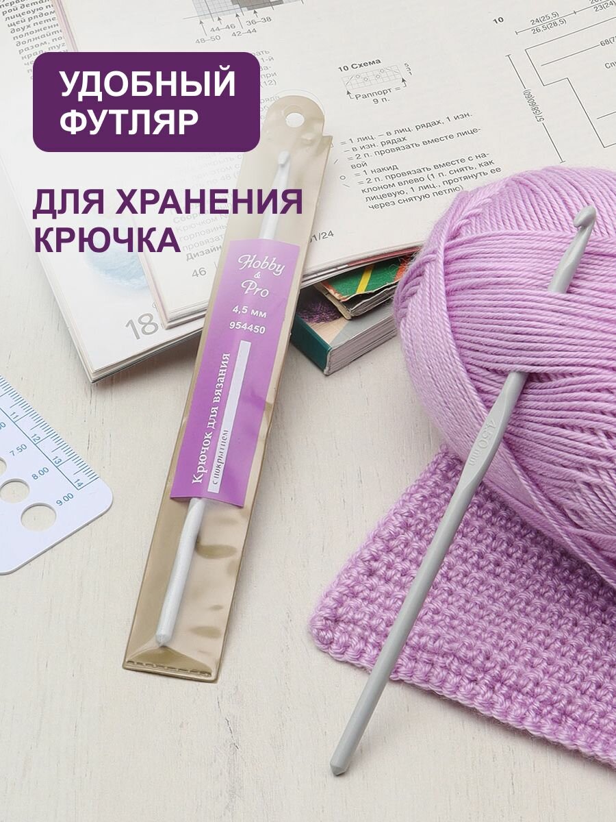 Крючок для вязания Hobby&Pro, 4,5мм*15см, алюминиевый с покрытием информация: