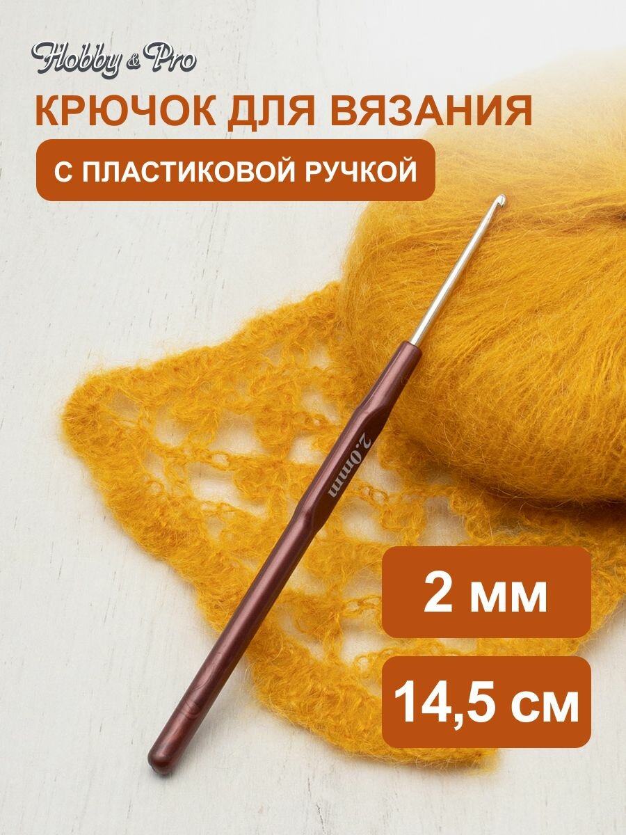 Крючок для вязания с пластиковой ручкой, диаметр 2 мм, длина 14,5 см, Hobby&Pro, 955200 информация: