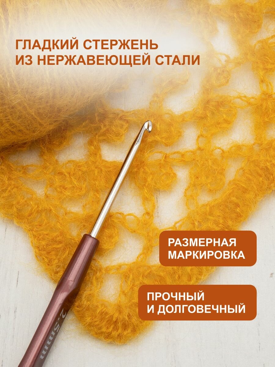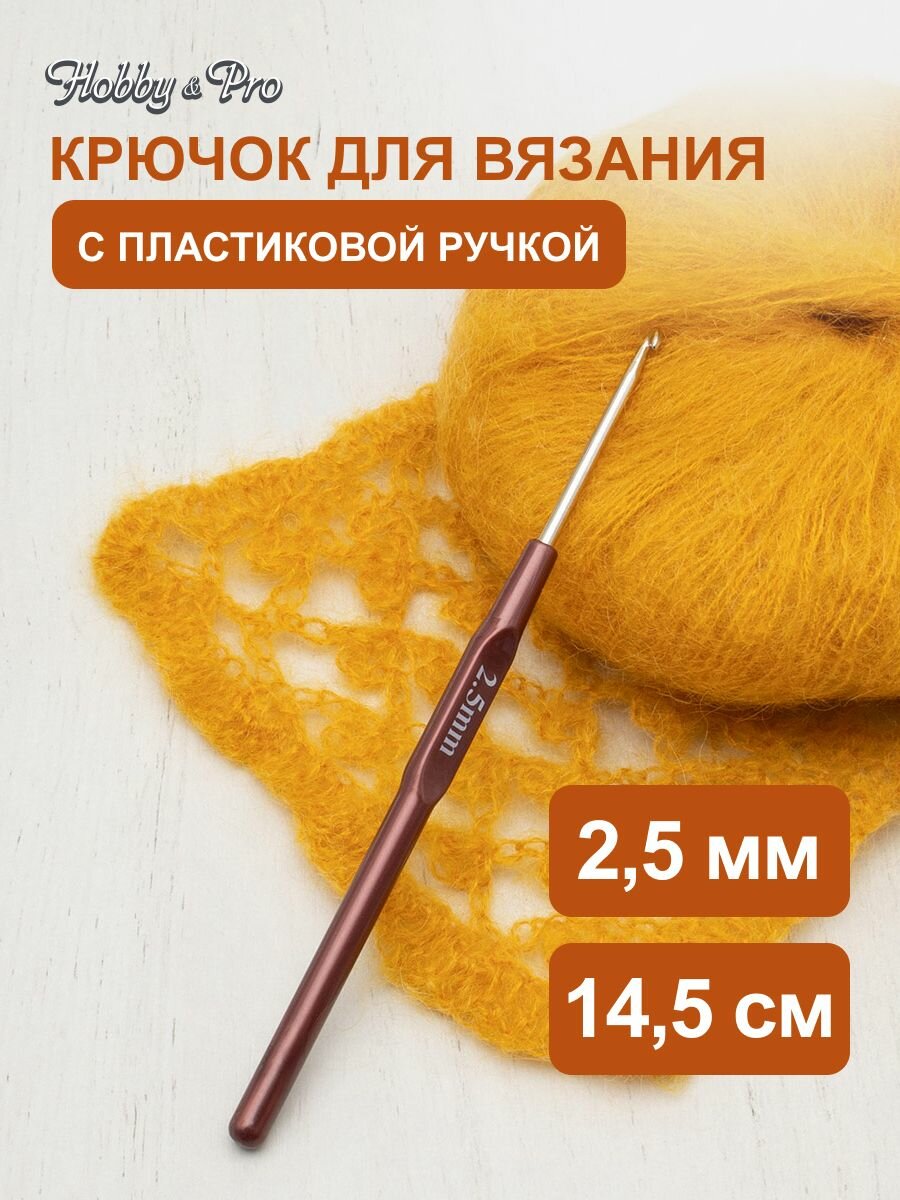 Крючок для вязания с пластиковой ручкой, диаметр 2,5 мм, длина 14,5 см, Hobby&Pro, 955250 информация: