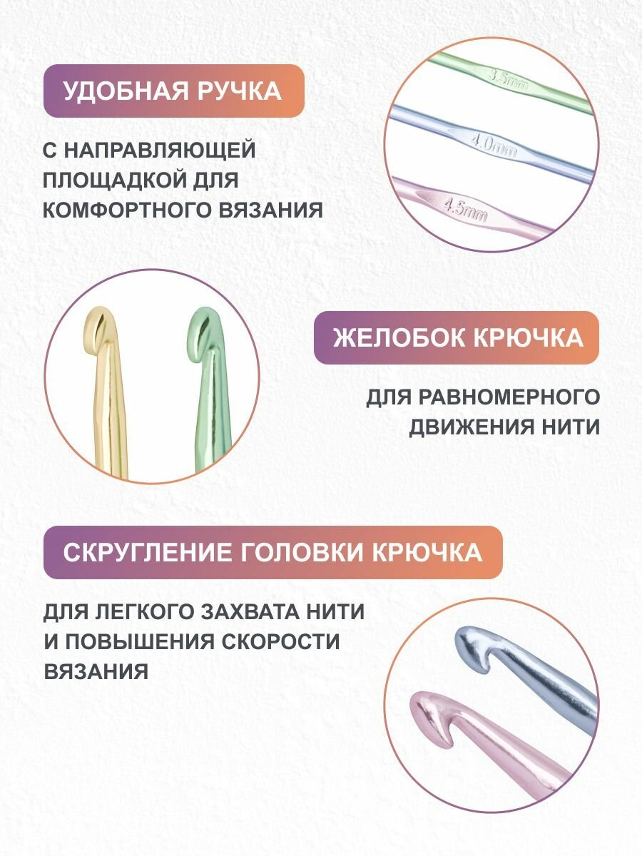 Набор цветных алюминиевых крючков с пластиковой ручкой 2,5 мм - 5 мм, длина 14 см, 6 шт, Hobby&Pro 273 ₽