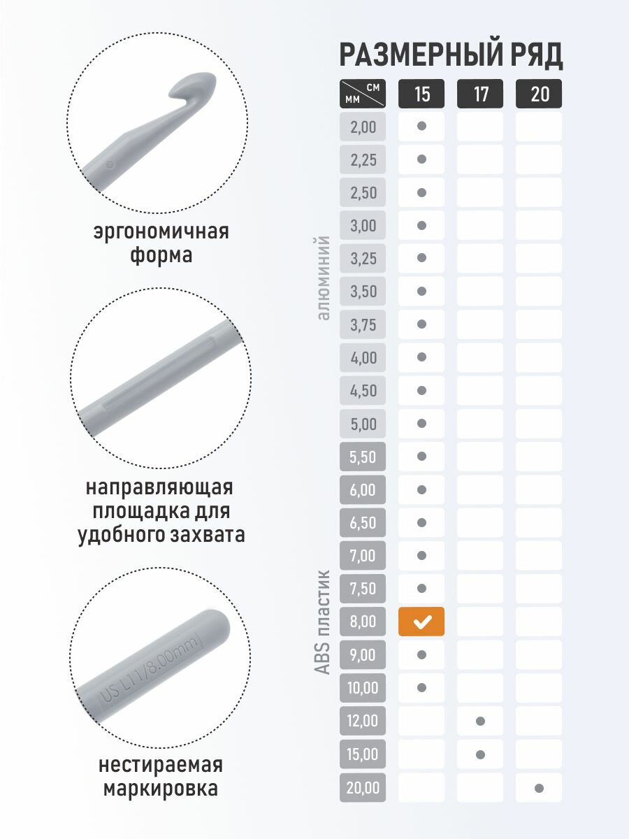 Крючок для вязания PONY, длина 15 см, диаметр 8 мм, пластиковый информация: