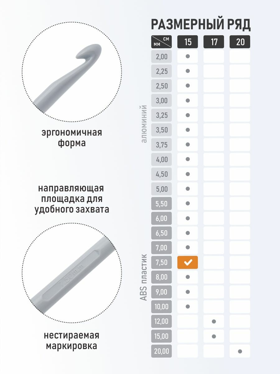 Крючок для вязания PONY, длина 15 см, диаметр 7,5 мм, пластиковый информация: