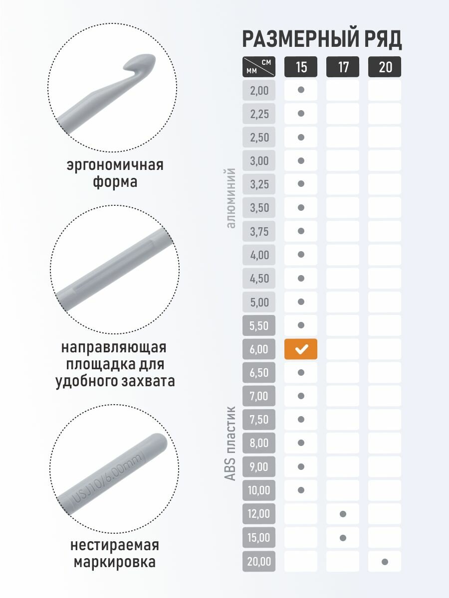 Крючок для вязания PONY, длина 15 см, диаметр 6 мм, пластиковый информация: