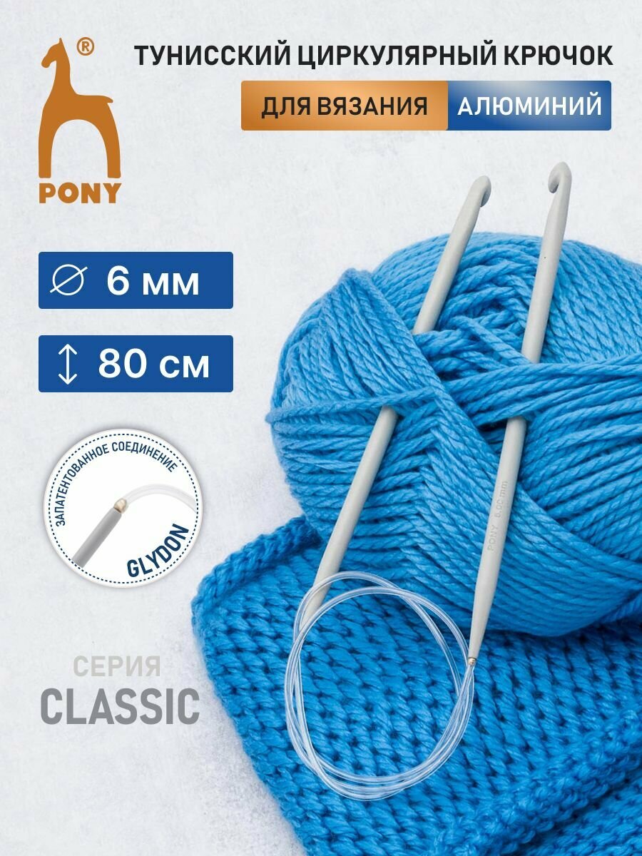 Крючок для вязания циркулярный 6мм*80см, алюминий, пластик, PONY, 56313 (46913) информация: