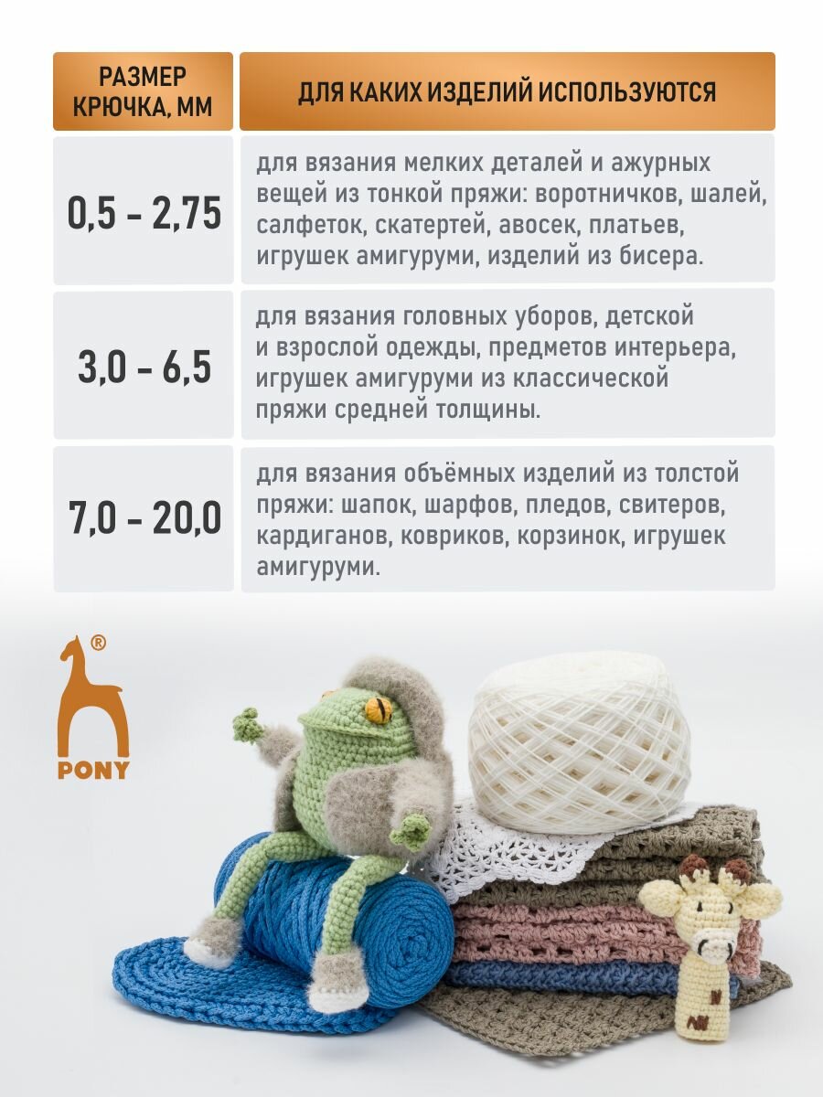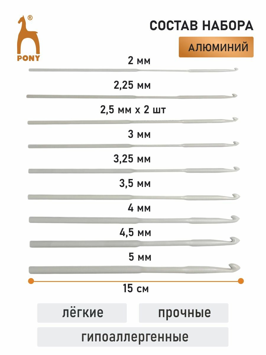 Набор крючков вязальных 2-5мм*15см (10 шт), алюминий, PONY, 45222 информация: