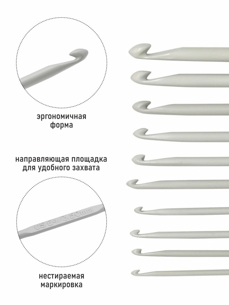 Крючки вязальные с силиконовой ручкой/ Набор крючков для вязания, 9 шт, диаметр 2; 2,5; 3; 3,5; 4; 4,5; 5; 5,5; 6 мм