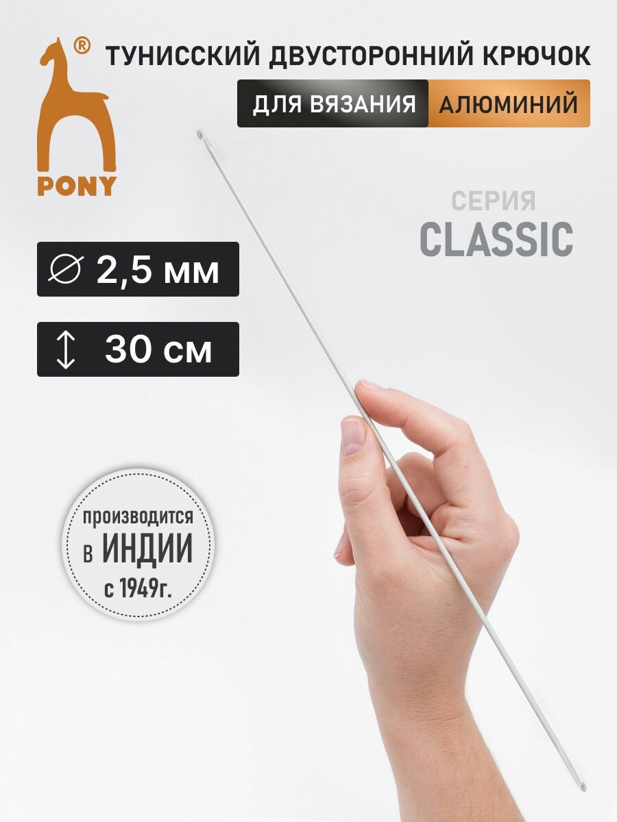 Крючок для вязания тунисский двусторонний 2,5мм*30см, алюминий, PONY, 43303 информация: