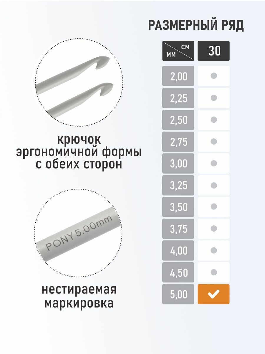 10 цен на Крючок для вязания тунисский двусторонний 5мм*30см, алюминий, PONY, 43311 (43971)