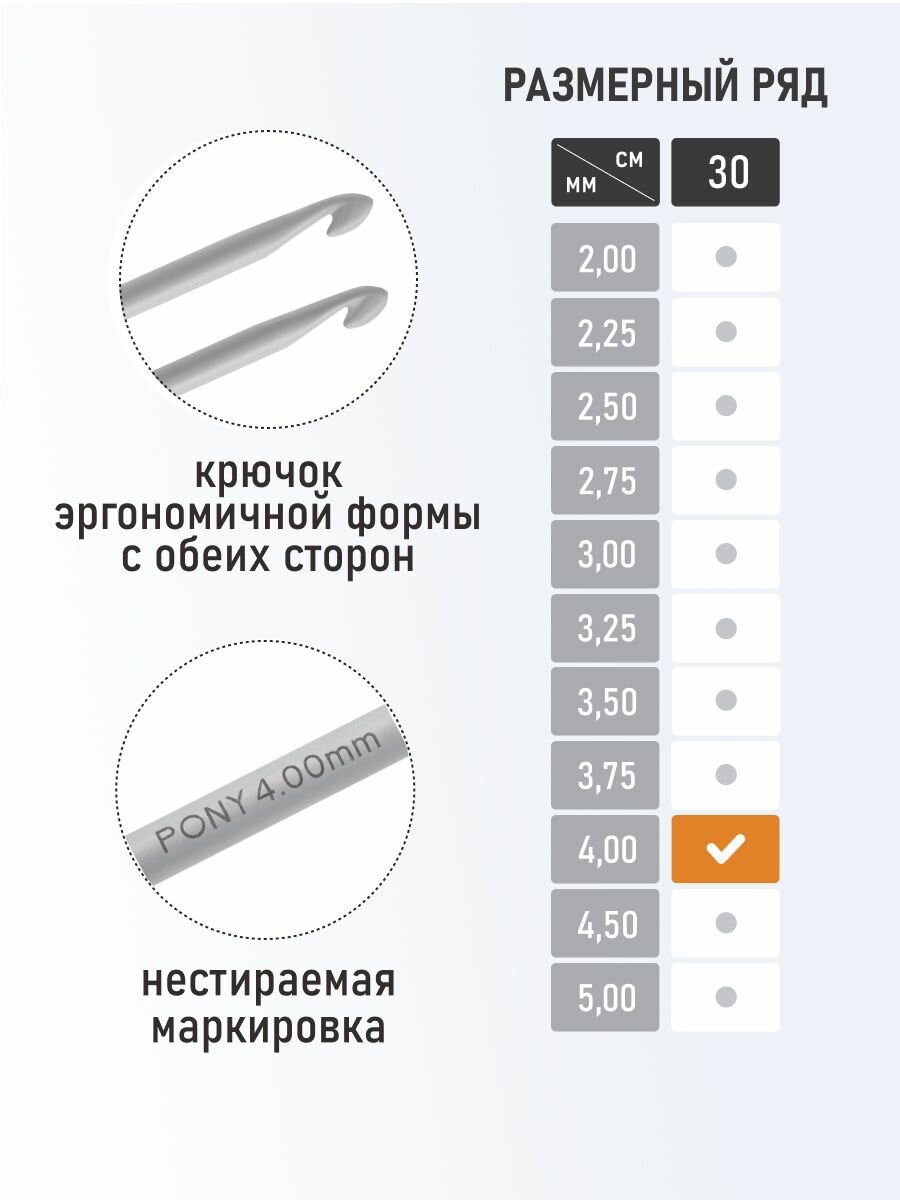10 цен на Крючок для вязания тунисский двусторонний 4мм*30см, алюминий, PONY, 43309