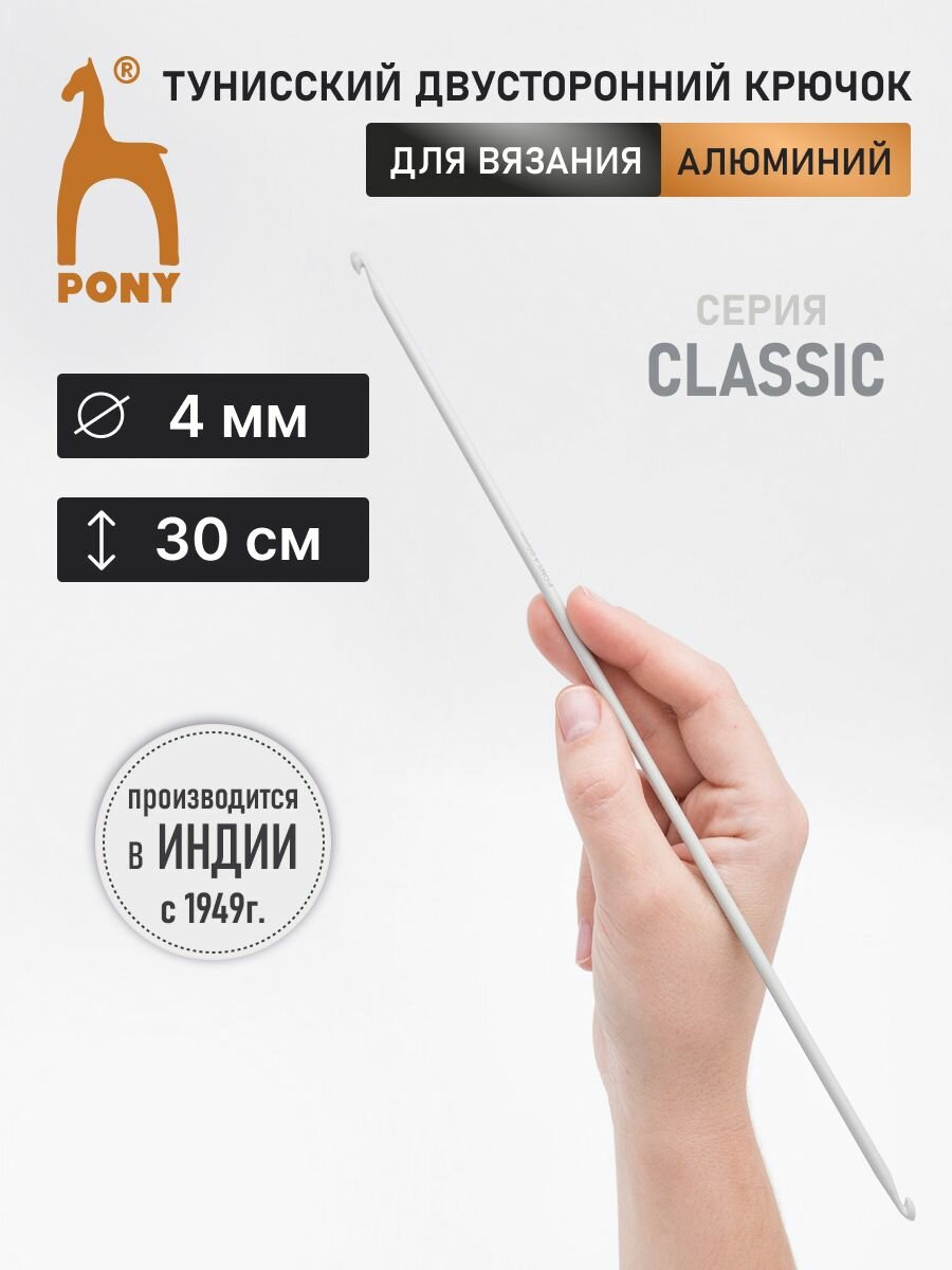 Крючок для вязания тунисский двусторонний 4мм*30см, алюминий, PONY, 43309 информация: