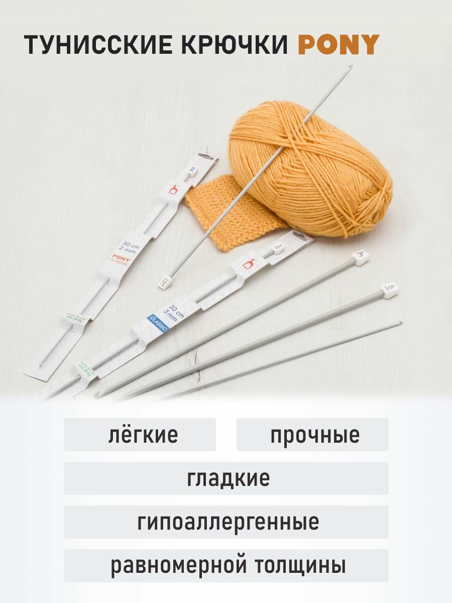 Отзывы на Крючок для вязания тунисский PONY, 5мм*30см, алюминиевый, с ограничителем