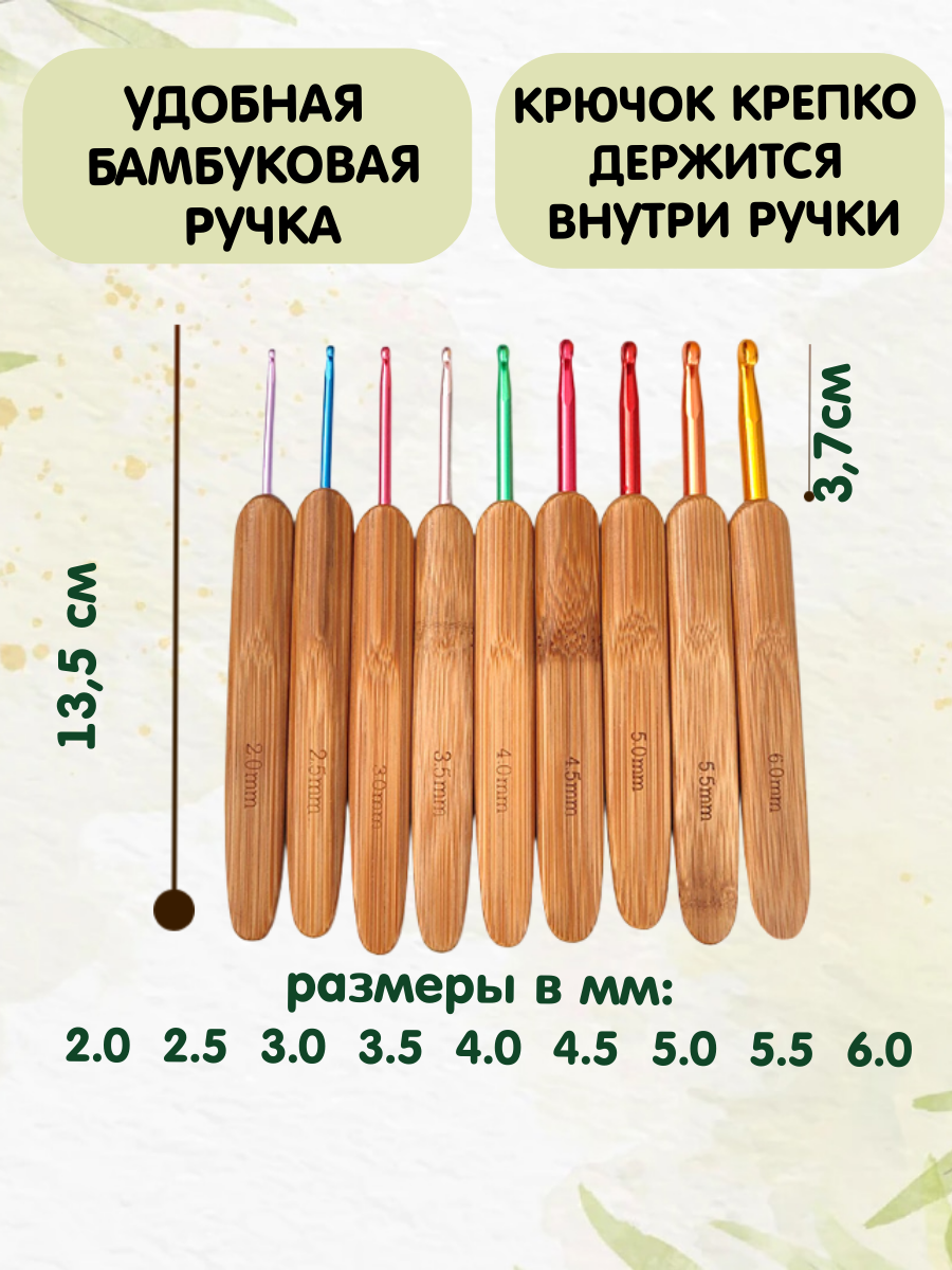 Набор крючков Decorland, 2 - 6 мм, для вязания, с бамбуковой ручкой, 9 шт информация: