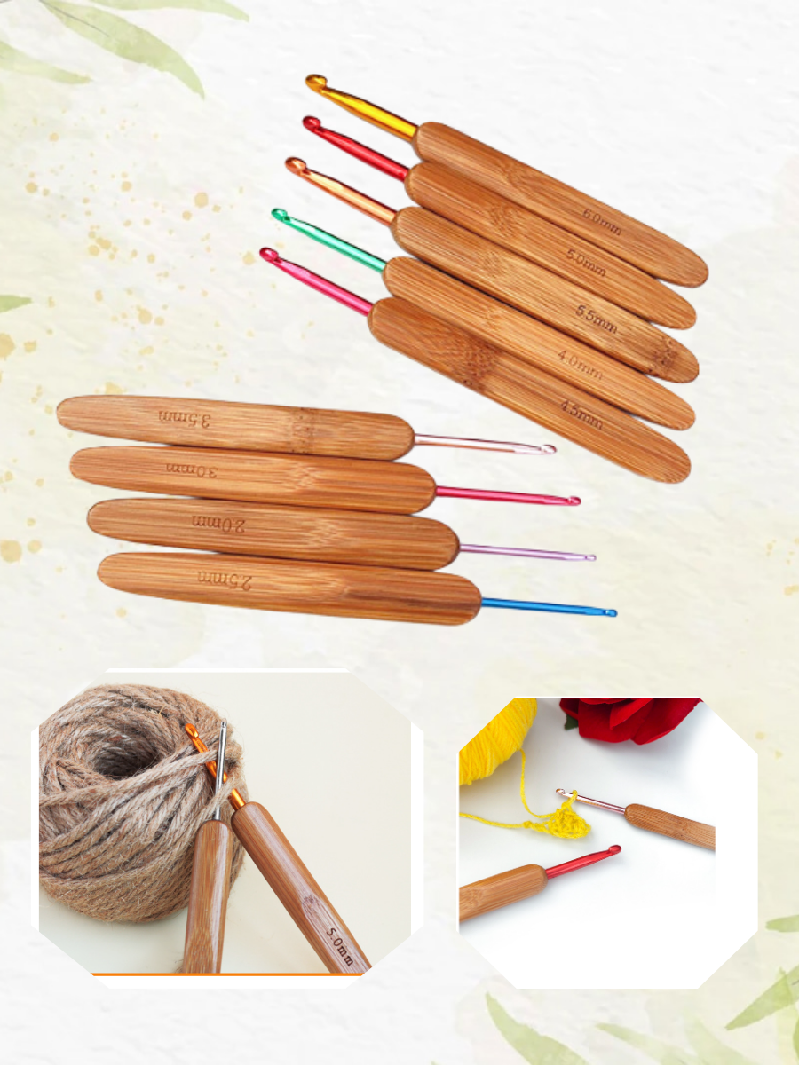 10 цен на Набор крючков Decorland, 2 - 6 мм, для вязания, с бамбуковой ручкой, 9 шт