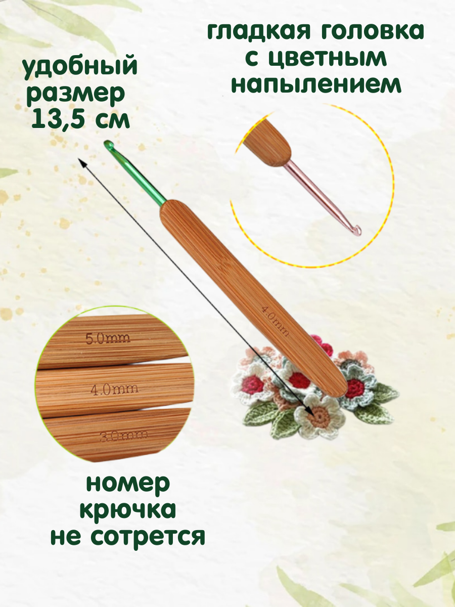 Отзывы на Набор крючков Decorland, 2 - 6 мм, для вязания, с бамбуковой ручкой, 9 шт