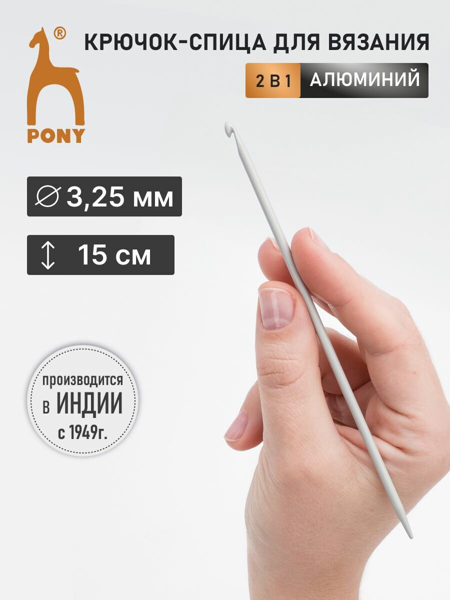 Крючок-спица для вязания PONY, длина 15 см, диаметр 3,25 мм, алюминиевый информация: