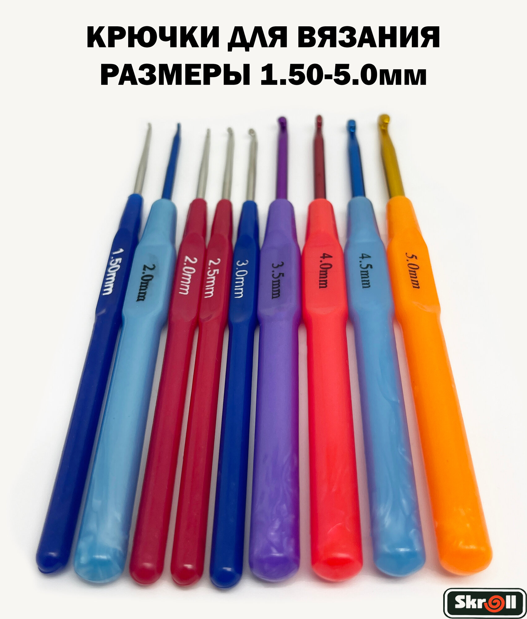 Набор алюминиевых разноцветных крючков с пластиковой ручкой 9 шт./ 1.5мм- 5мм/ Skroll информация: