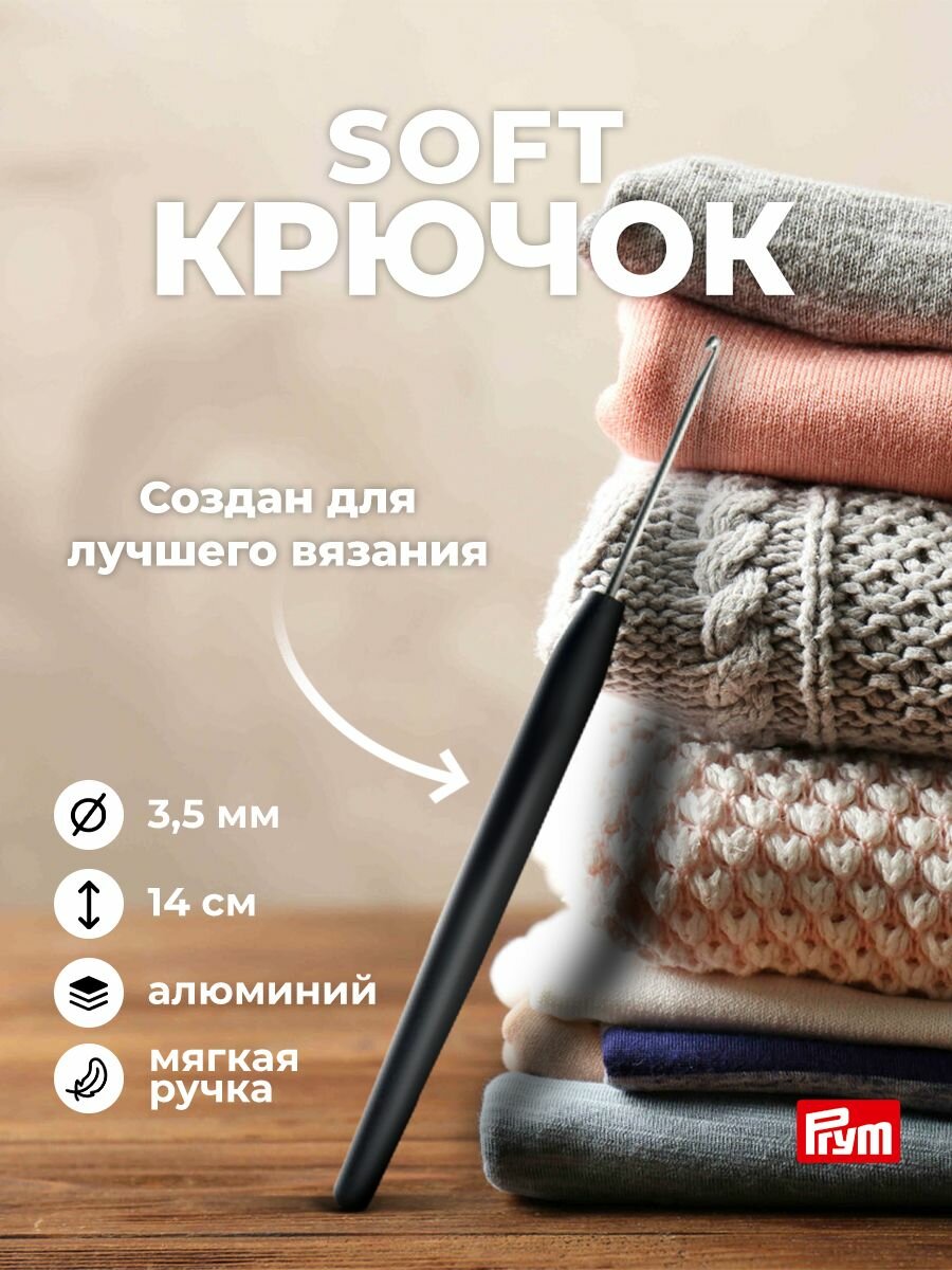 Отзывы на Крючок для вязания SOFT с мягкой ручкой, алюминий 3,5 мм* 14 см, Prym, 195175