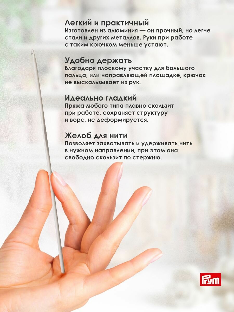 Крючок для вязания с направляющей площадью, алюминий, 2 мм*14 см, Prym, 195135 информация: