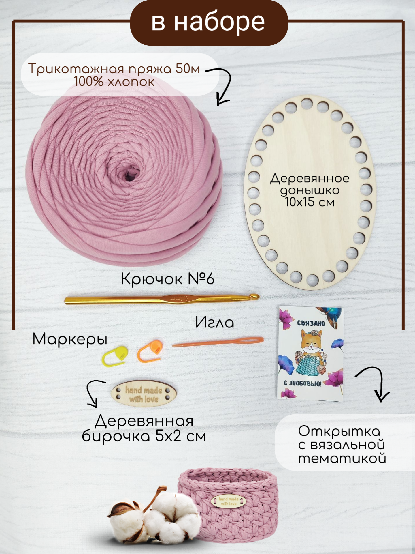 Отзывы на Набор для вязания крючком "Сиреневый слон" овальная корзина, цвет "Чайная роза"