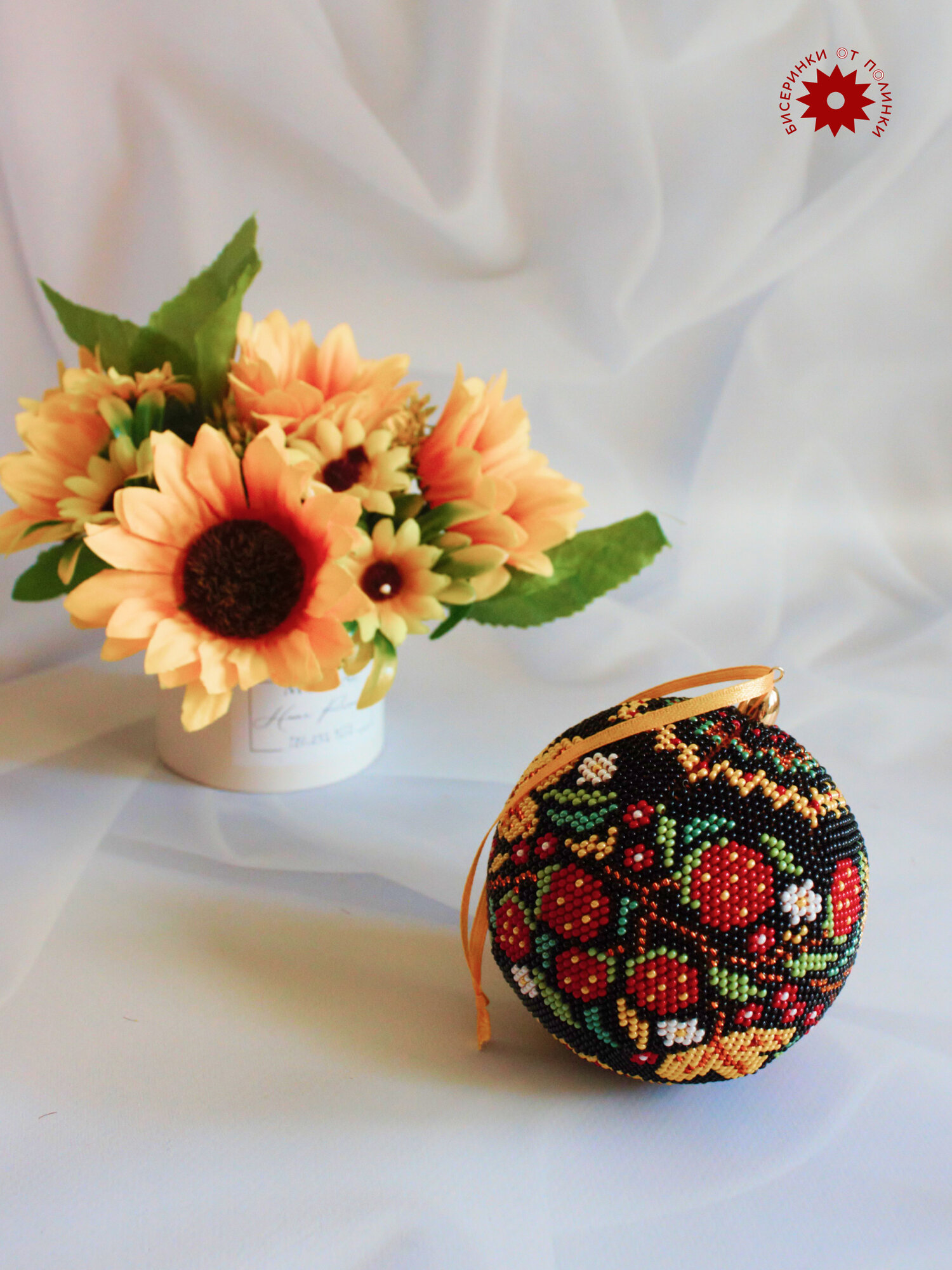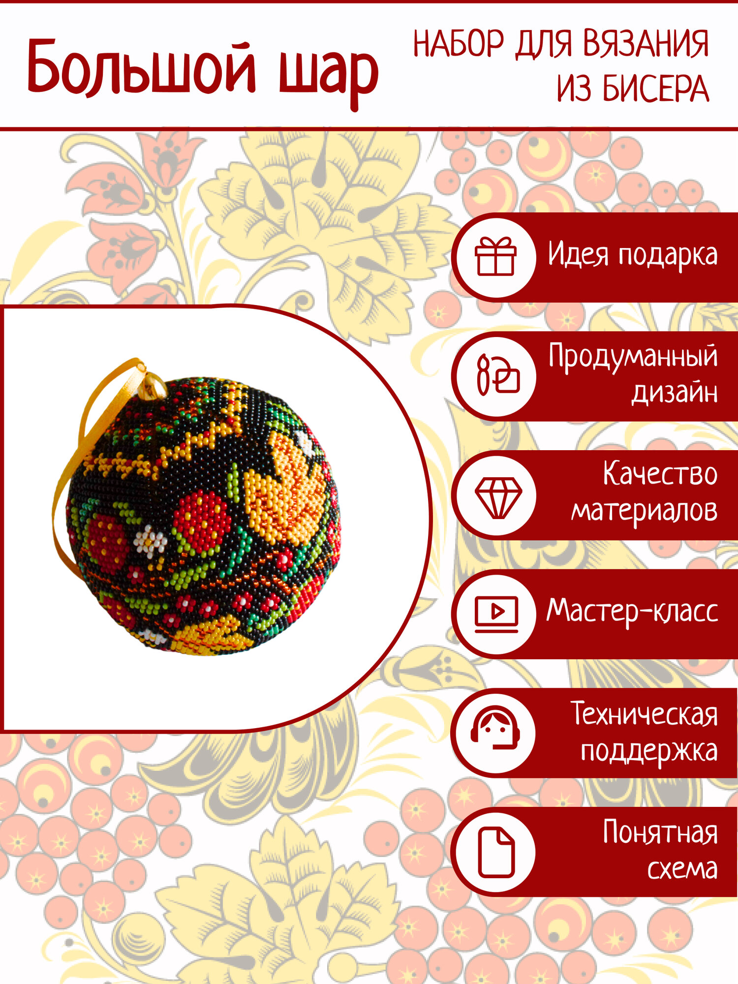 Отзывы на Дизайнерские украшения из бисера. Набор для вязания большого шара из бисера Хохлома, 80 мм
