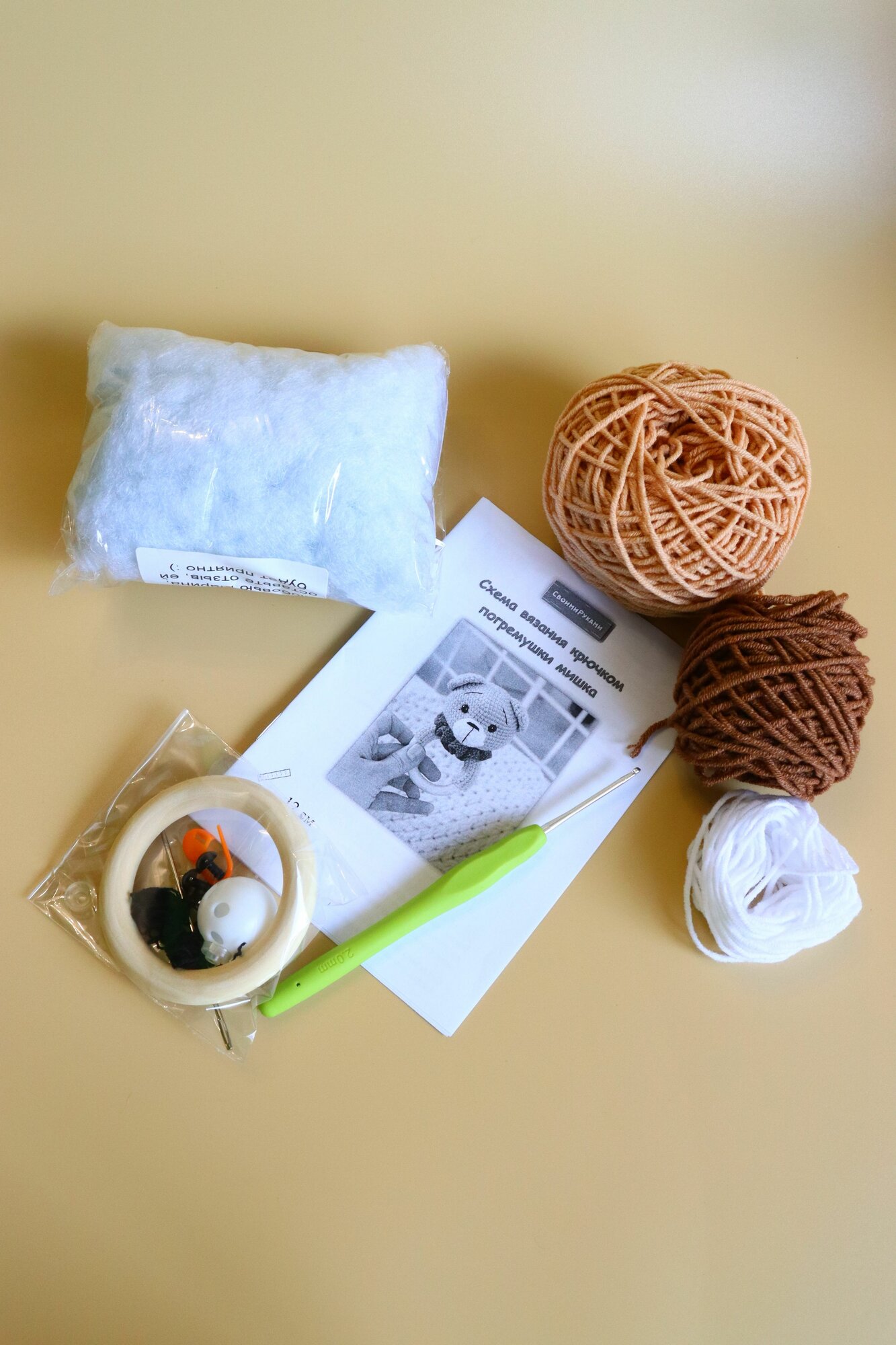 10 цен на Набор для вязания крючком погремушки мишка амигуруми
