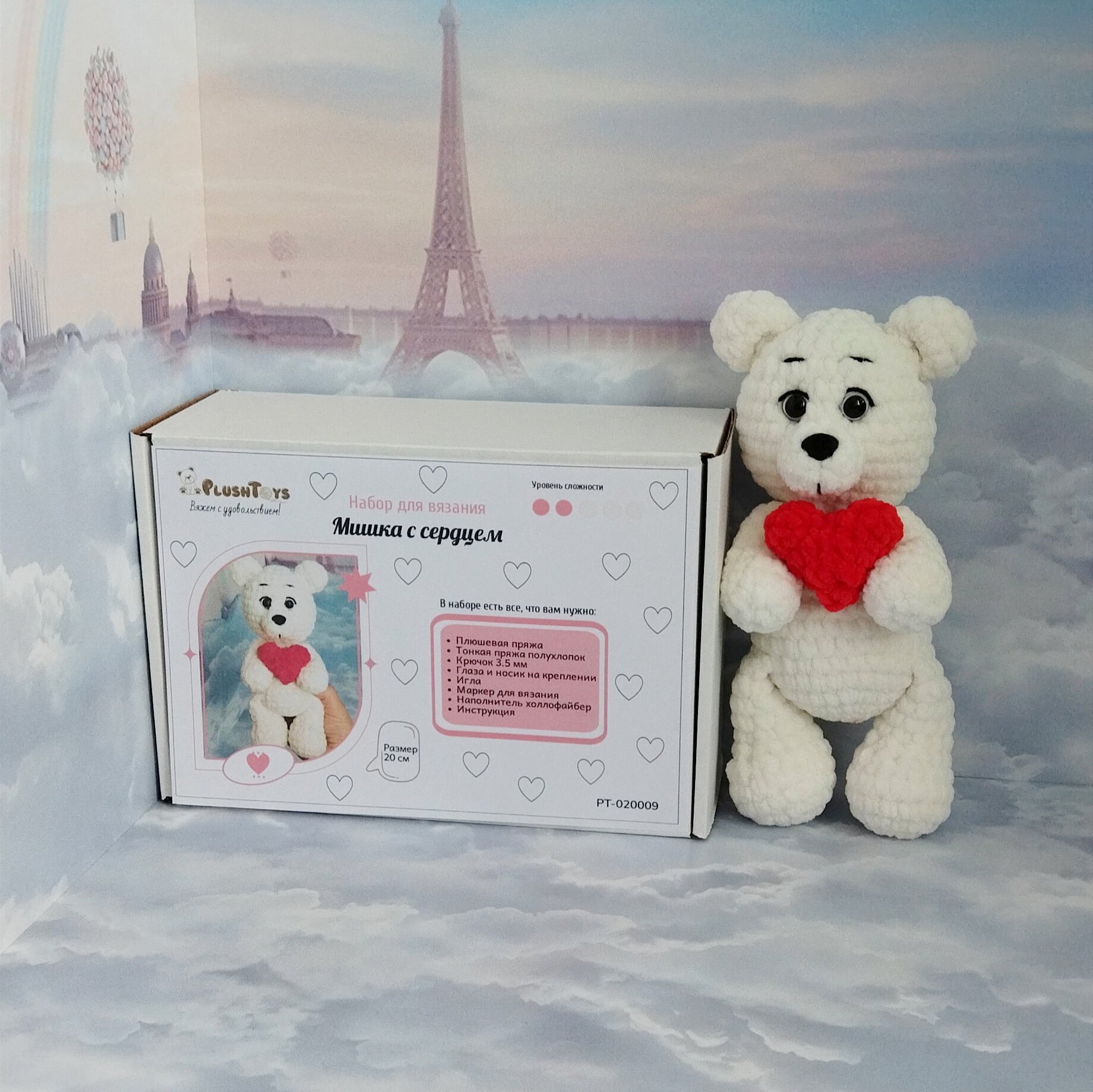 10 цен на Набор для вязания игрушки крючком "Мишка с сердцем", набор для рукоделия, амигуруми своими руками